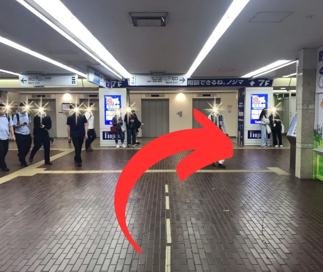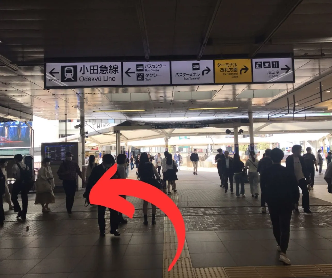小田急百貨店エレベーターのすぐ右の出口から外に出ます。