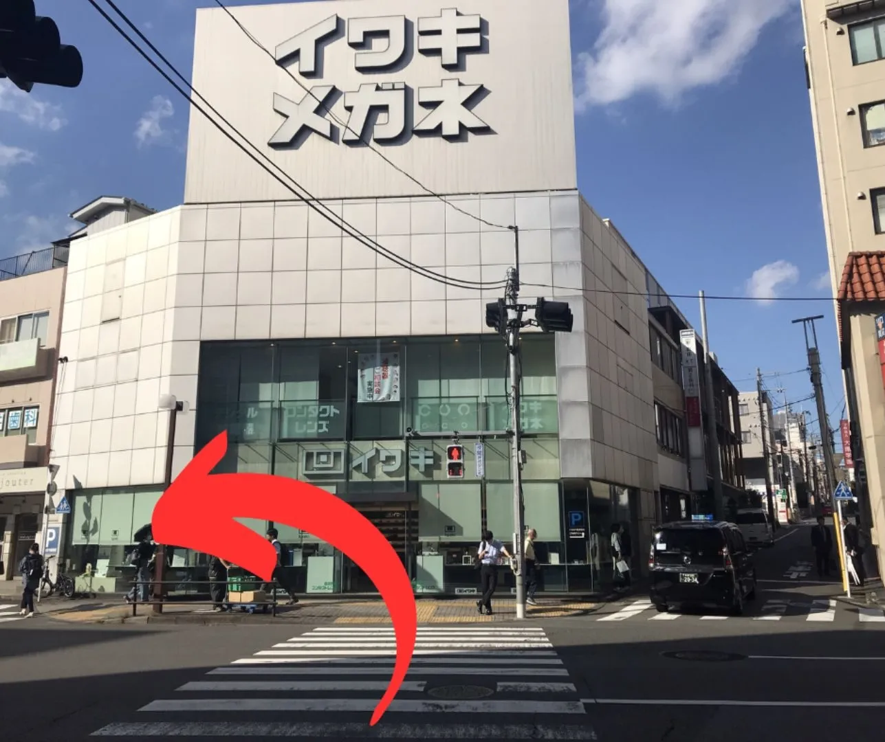 みずほ銀行前の信号を渡り、市役所方面へまっすぐ道なりに歩きセブンイレブンを通り過ぎ、しばらするとイワキメガネが見えます。