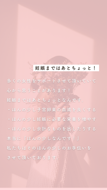 4妊娠に向けて身体を整えるための整体や、具体的な呼吸法の仕方をお使えします。