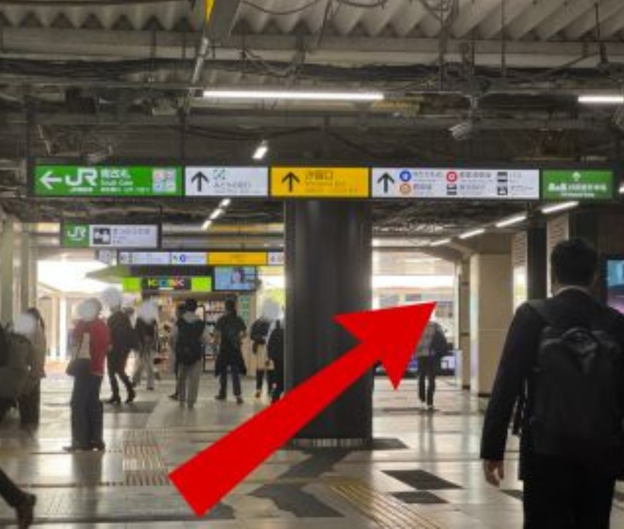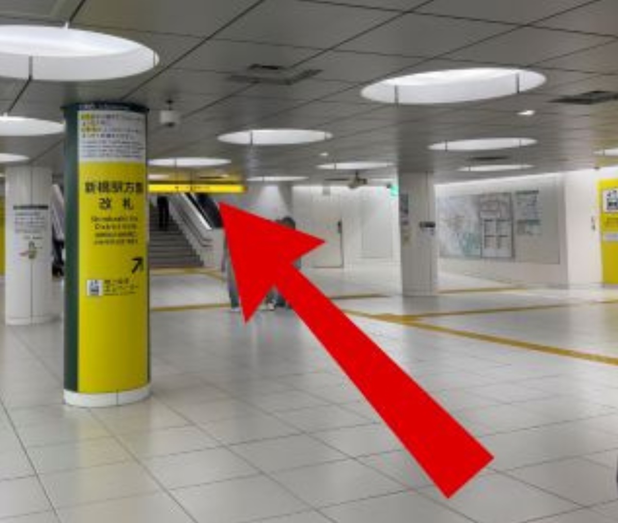 改札を出たらまっすぐ、新橋方面へエスカレーターを登ります。
