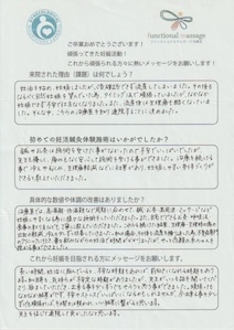 - ファンクショナルマッサージの施術を受けての感想をお願いします