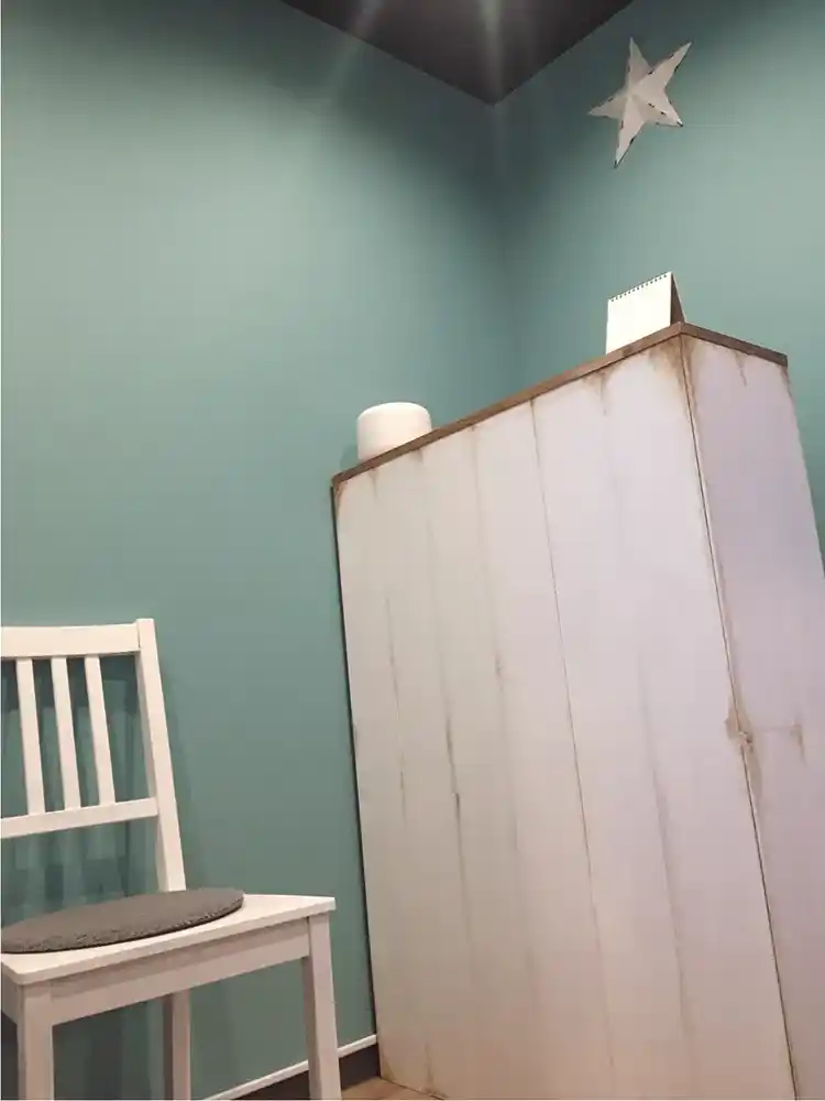 お友達のお家に来たような安心感を持っていただければ、とDIYでペンキを塗ったり棚をつくったり、カーテンや暖簾を作ってみたり、温かみのある雰囲気を重視しています。